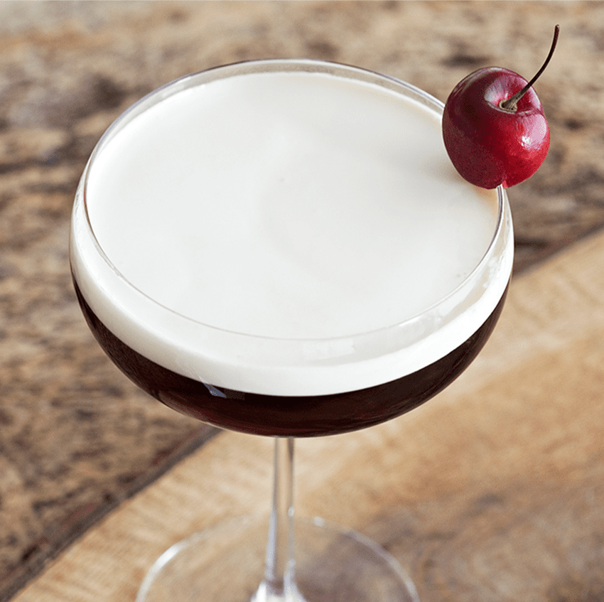 - 6. Garnish with a cherry and a shaving of dark chocolate.