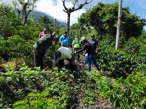 Only the ripest and reddest cherries are hand-picked by farmer members. After pulping, the cherries are soaked for 8 hours, before being fermented for another 8 hours. The coffee is dried on a parachute until the skin is dry, the coffee is still moist when peeled. The beans are then laid to dry again in the sun until they have reached a moisture content of 13%. The coffee is then hand-sorted to take out any imperfect beans.